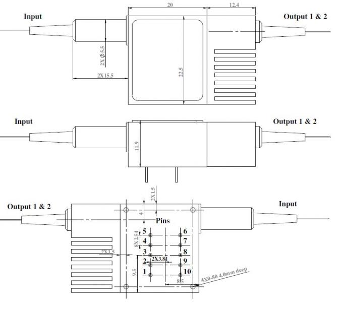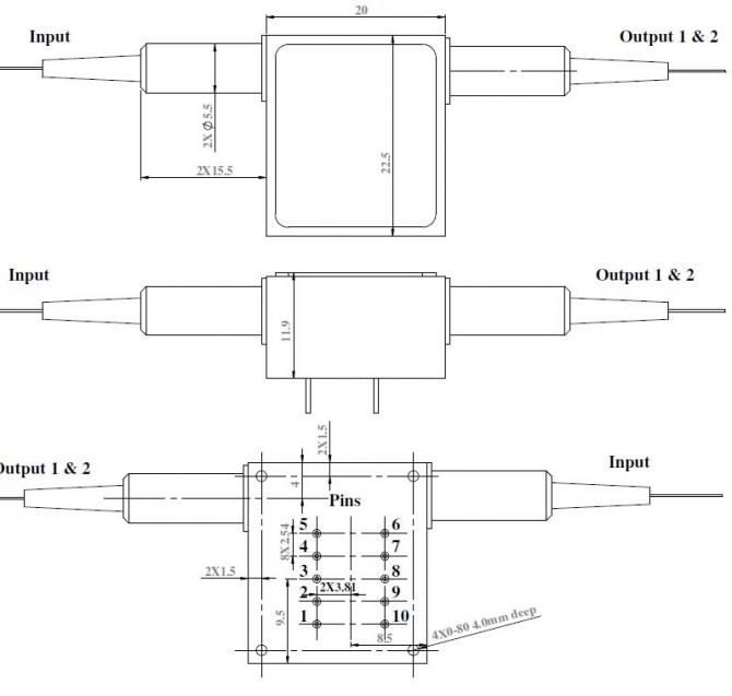 1250~1650nm 1X2 Standard / High Power Mechanical Fiber Optic Switch