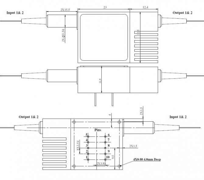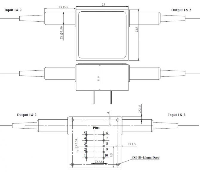 1250~1650nm 2X2 Standard / High Power Mechanical Fiber Optic Switch